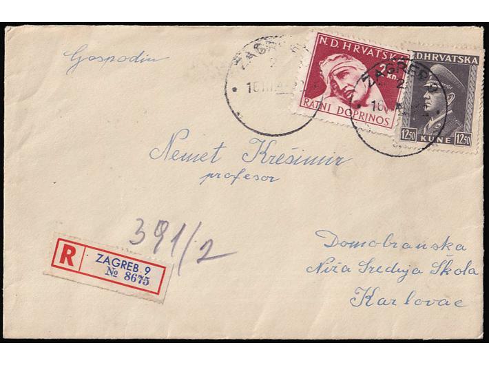 Preporučeno pismo upućeno iz Zagreba u Karlovac 16.03. 1944.