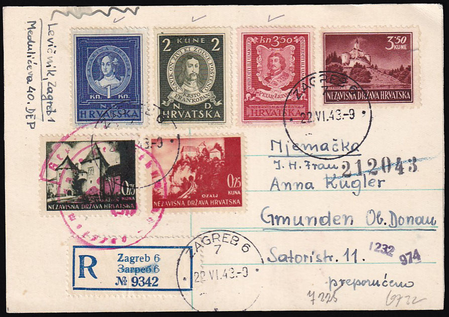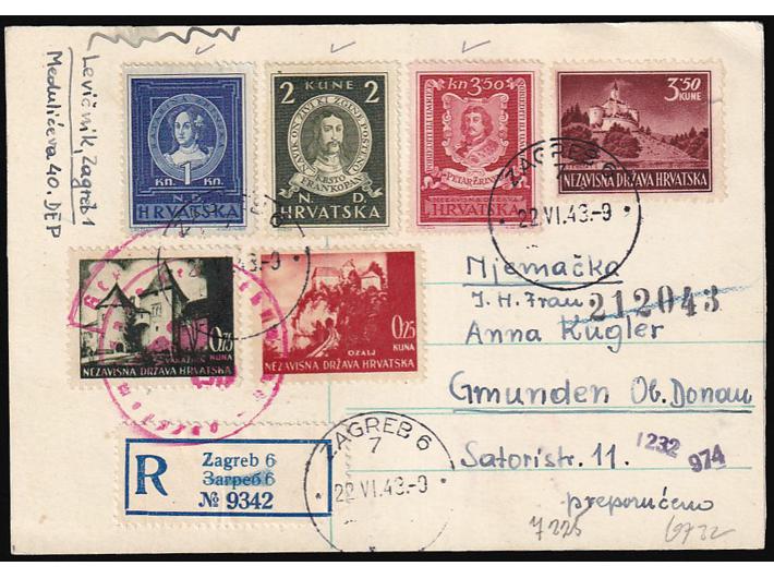 • Preporučeno upućena dopisnica iz Zagreba u Gmunden 22.6. 1943.