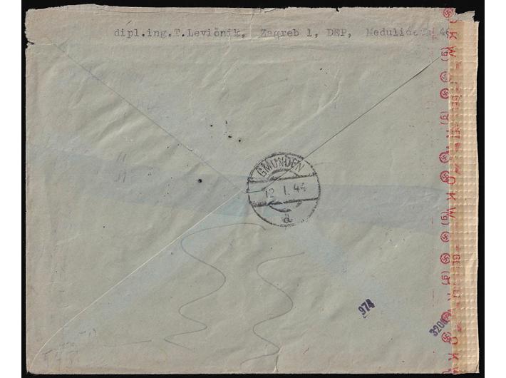 Preporučeno upućeno pismo iz Zagreba u Njemačku 04.01. 1944.