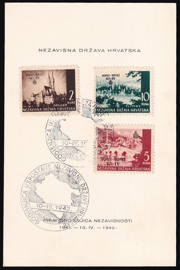 • Prigodna dopisnica povodom 1. godišnjice NDH, tekst na Hrvatskom.
