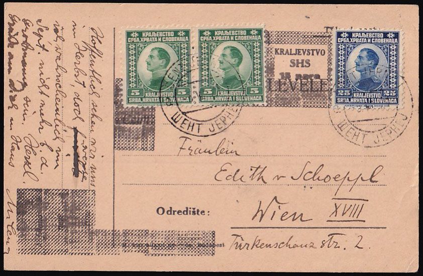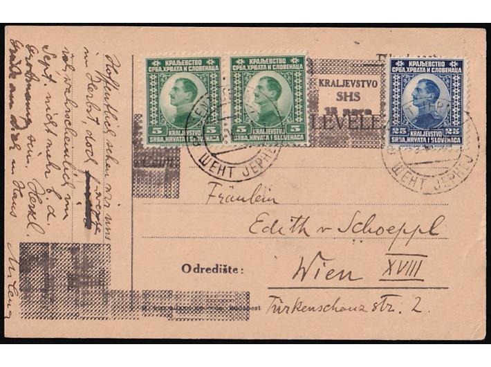 - Provizorna dopisnica dofrankirana prvim redovnim izdanjem kraljevine SHS