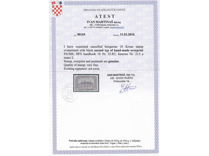 - Provizorna marka 10 kruna s ručnim pretiskom II tip.