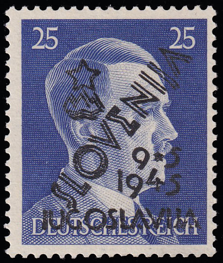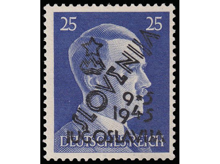 • Provizorna marka 25 pf. s dvostrukim pretiskom SLOVENIJA.