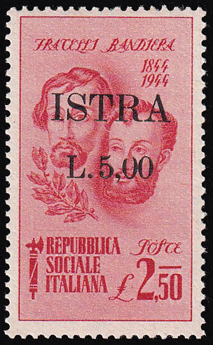 • Provizorna marka Fratelli Bandiera s pogreškom pretiska 22 polja u pretisnom arku od 50