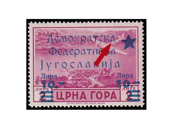 - Provizorno izdanje za Cetinje 10 na 2 lire, pogreška pretiska DEMOKRATSKD umjesto DEMOKRATSKA.