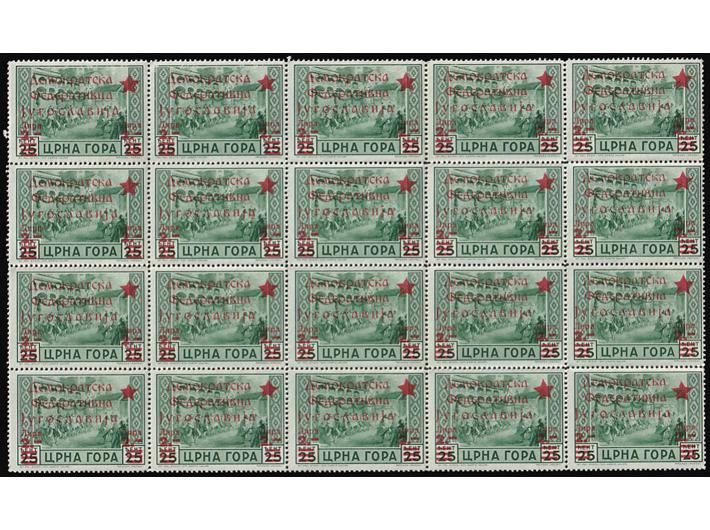 • Provizorno izdanje za Cetinje 2 lire na 25 centi, pretisni arčić 5x4 s pogreškom pretiska 2. Polja