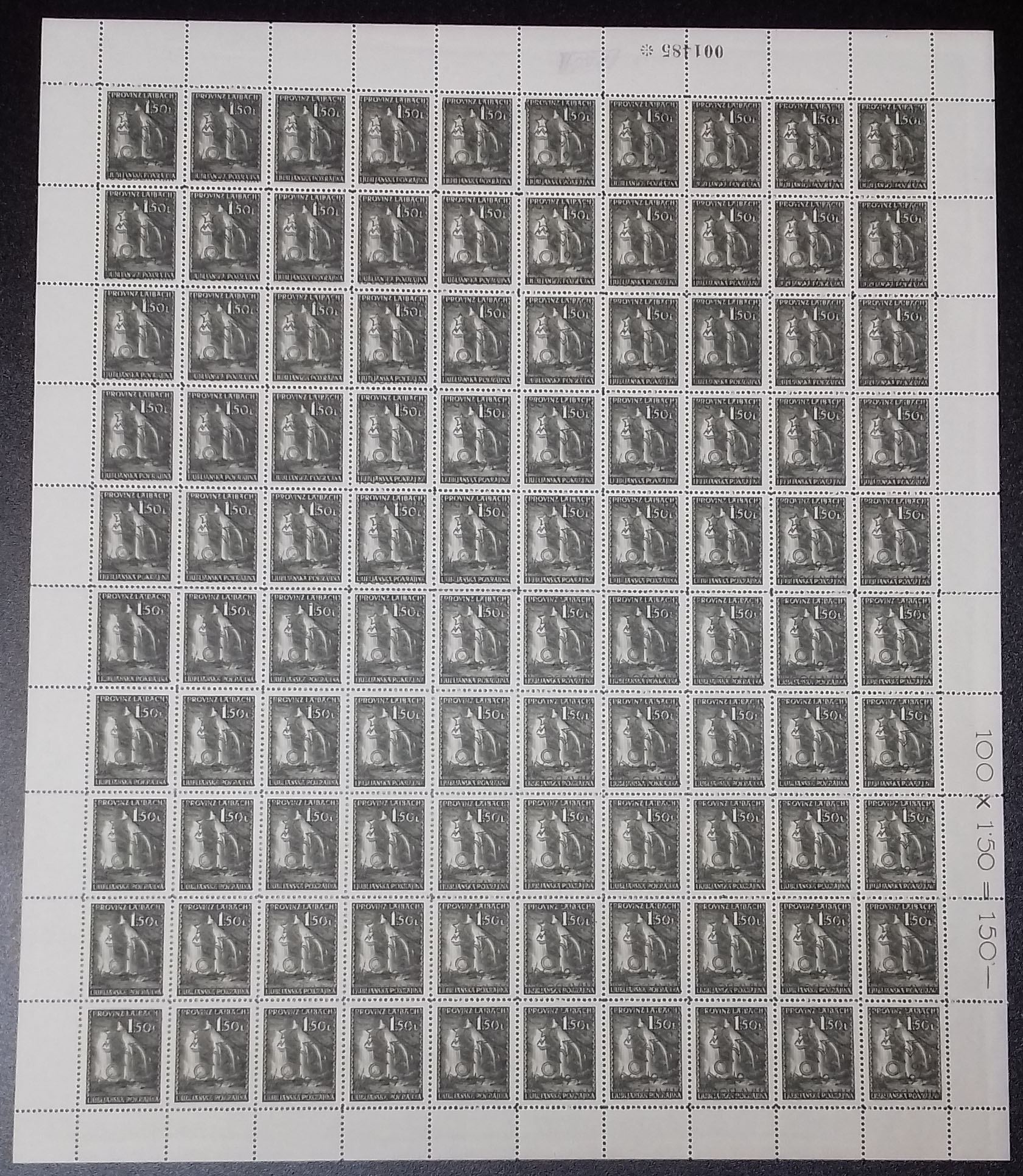 Provizorno izdanje za Ljubljanu 1,50 lira, Michel br. 9, kompletan arak