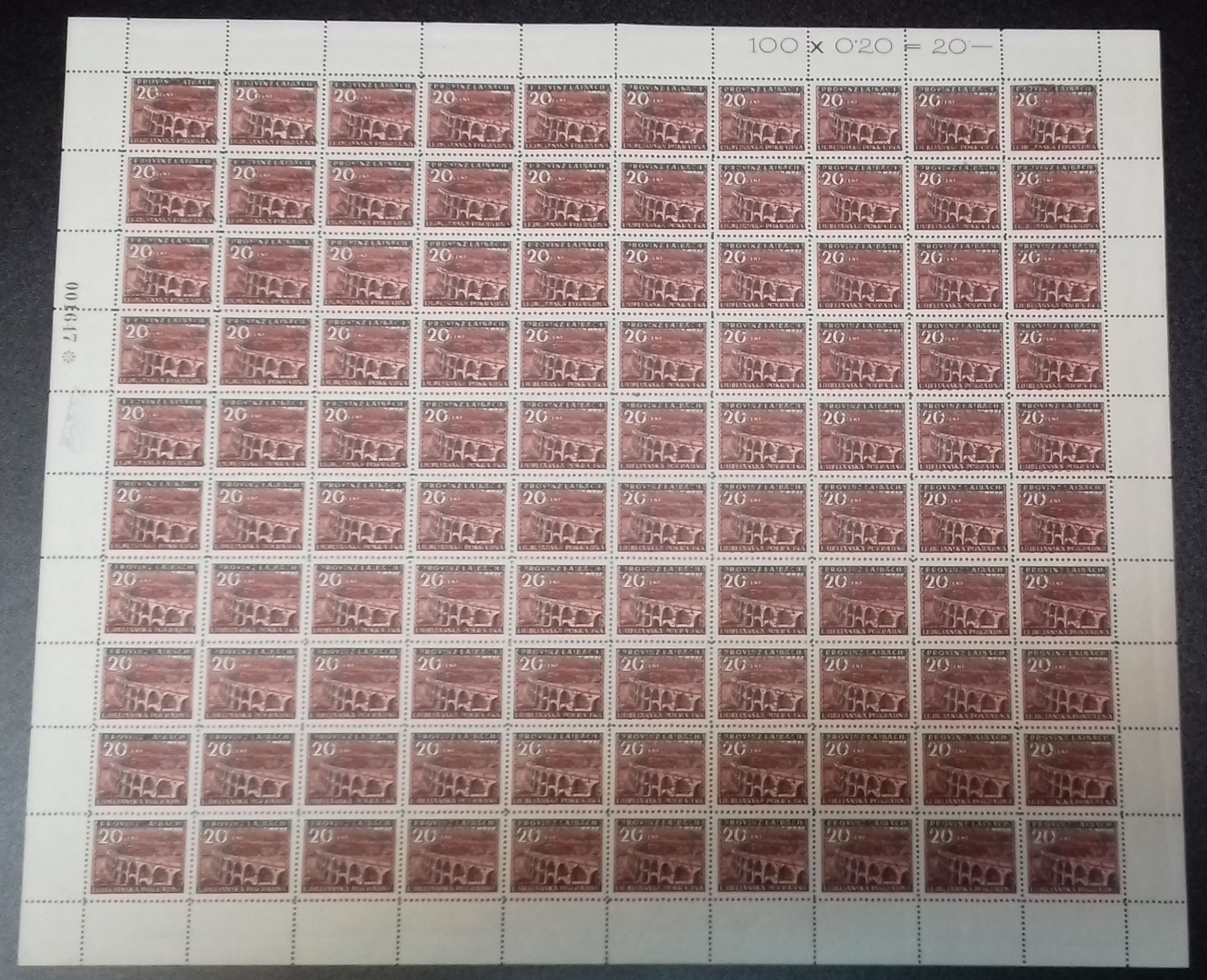 Provizorno izdanje za Ljubljanu 20 centi, Michel br. 3, kompletan arak