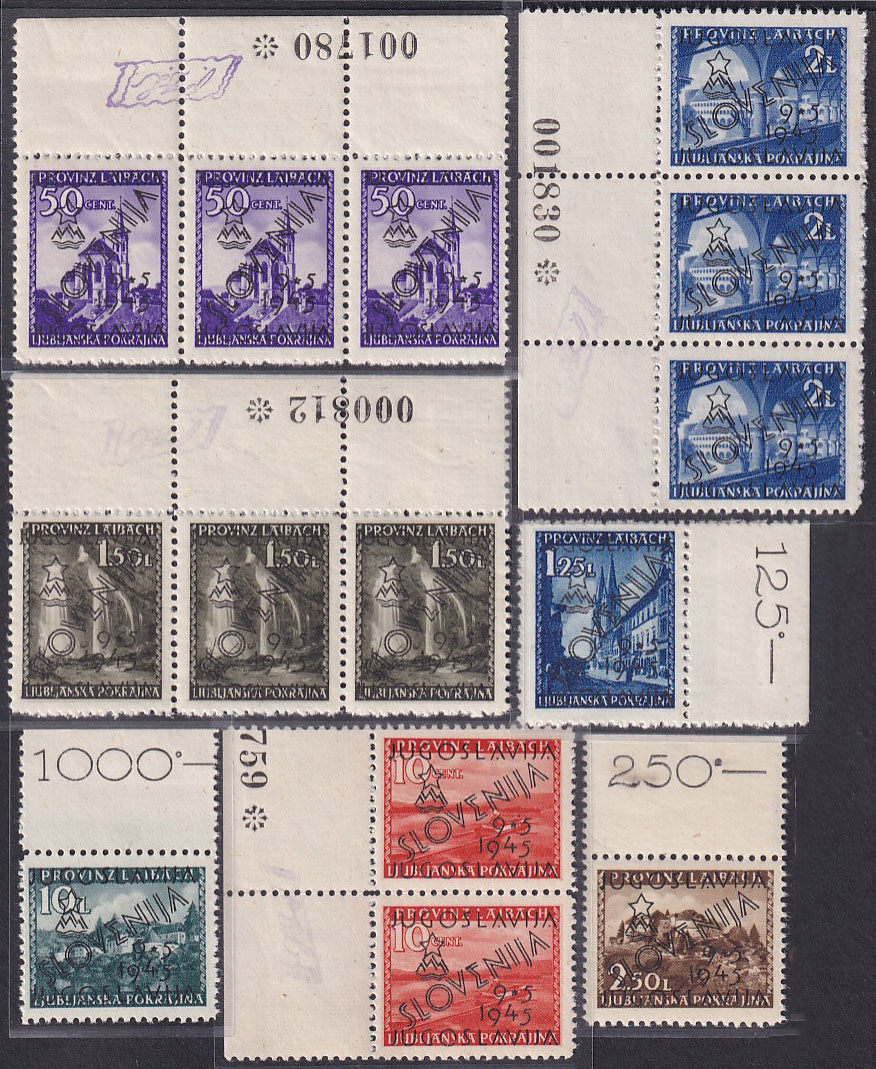 - Provizorno izdanje za Ljubljanu, sedam raznih vrijednosti sve sa oznakama na marginama.