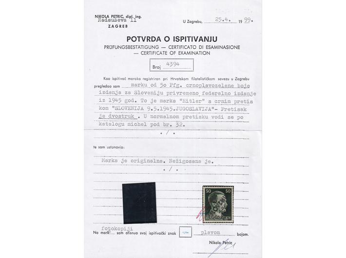 Opis: Provizorno izdanje za Maribor, 50 pf. Dvostruki pretisak. Fotoatest Petric. Odlična kvaliteta