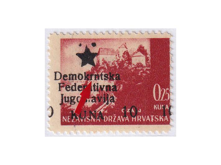 Provizorno izdanje za Mostar pretisak 10/0,25 kn. Pogreška pretiska 49 polja