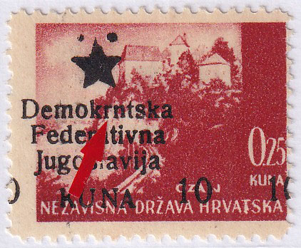 • Provizorno izdanje za Mostar pretisak 10/0,25 kn. Pogreška pretiska 49 polja