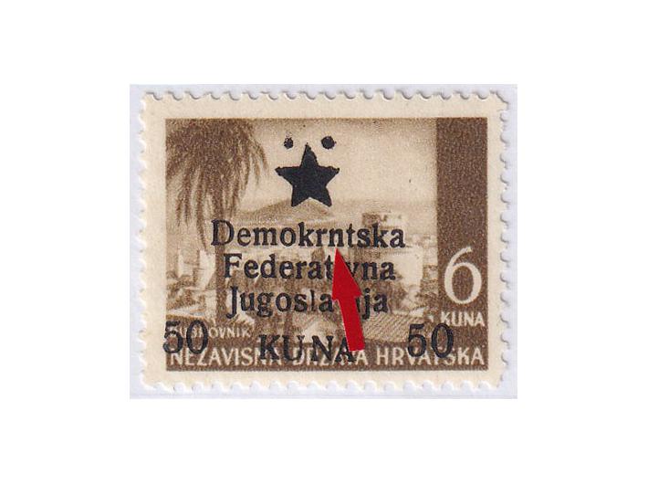 Provizorno izdanje za Mostar pretisak 50/6 kn. Pogreška pretiska 49 polja