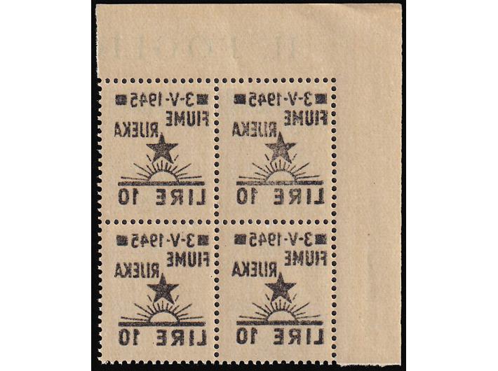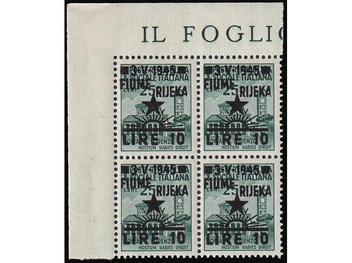 • Provizorno izdanje za Rijeku, četverac 10 lira na 25 centi s vrlo atraktivnim probojem pretiska.