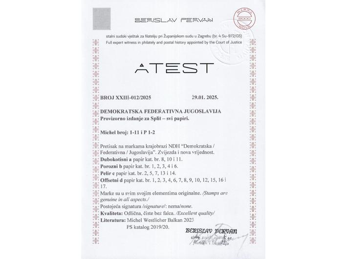 Opis: Provizorno izdanje za Split, komplet svi papiri, odlična kvaliteta. Fotoatest Pervan.