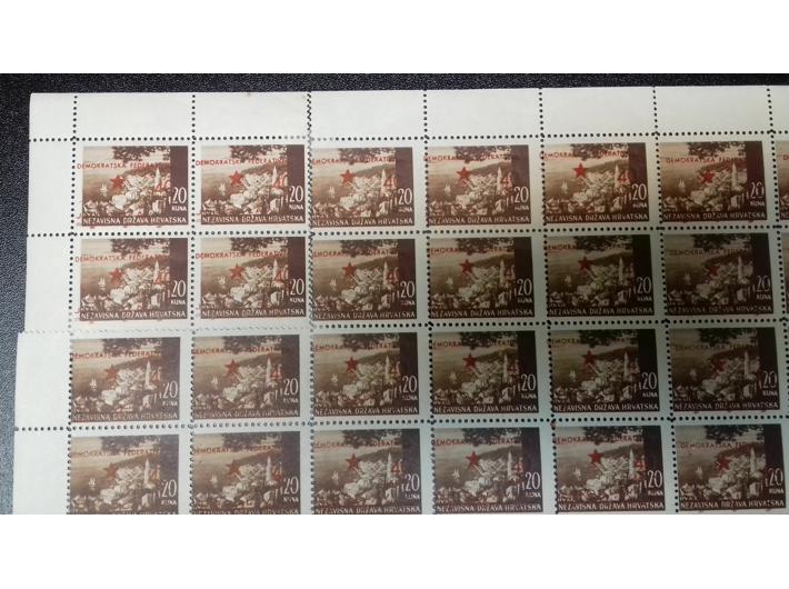 Opis: Provizorno izdanje za Split, pretisak 40 na 20 kn, kompletan arak. Gornji lijevi četverac rekonstuiran.