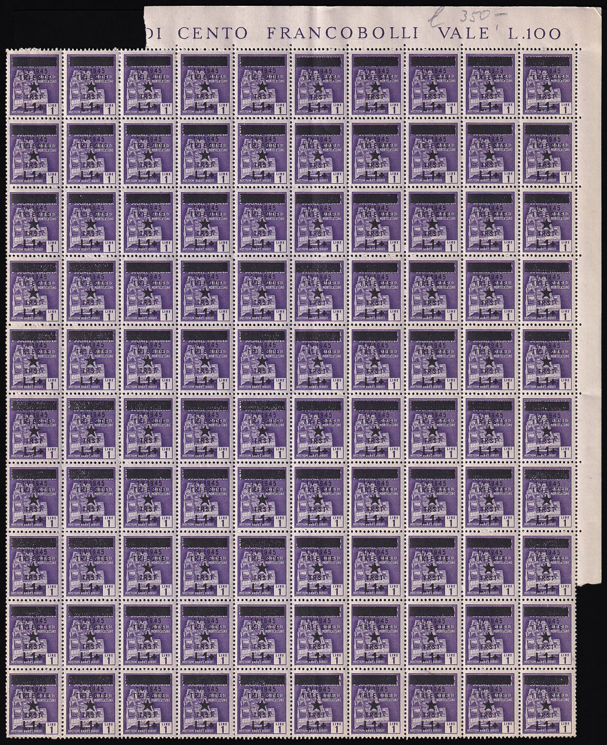 Provizorno izdanje za Trst kompletan arak, pretisak 1 L/1 L.