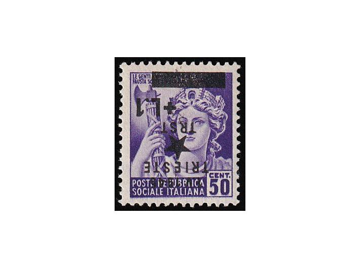 Provizorno izdanje za Trst 1 l / 50 centi, obrnuti pretisak.