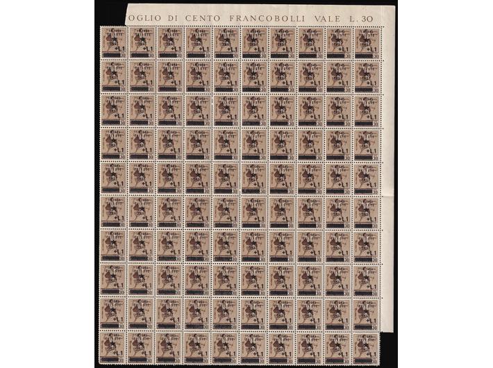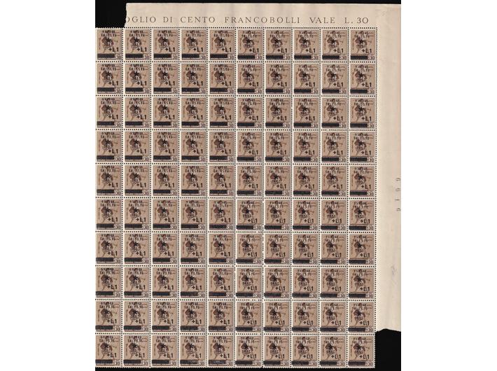 Provizorno izdanje za Trst, dva kompletna arka 1 L/30 centi. Različite pretisne ploče