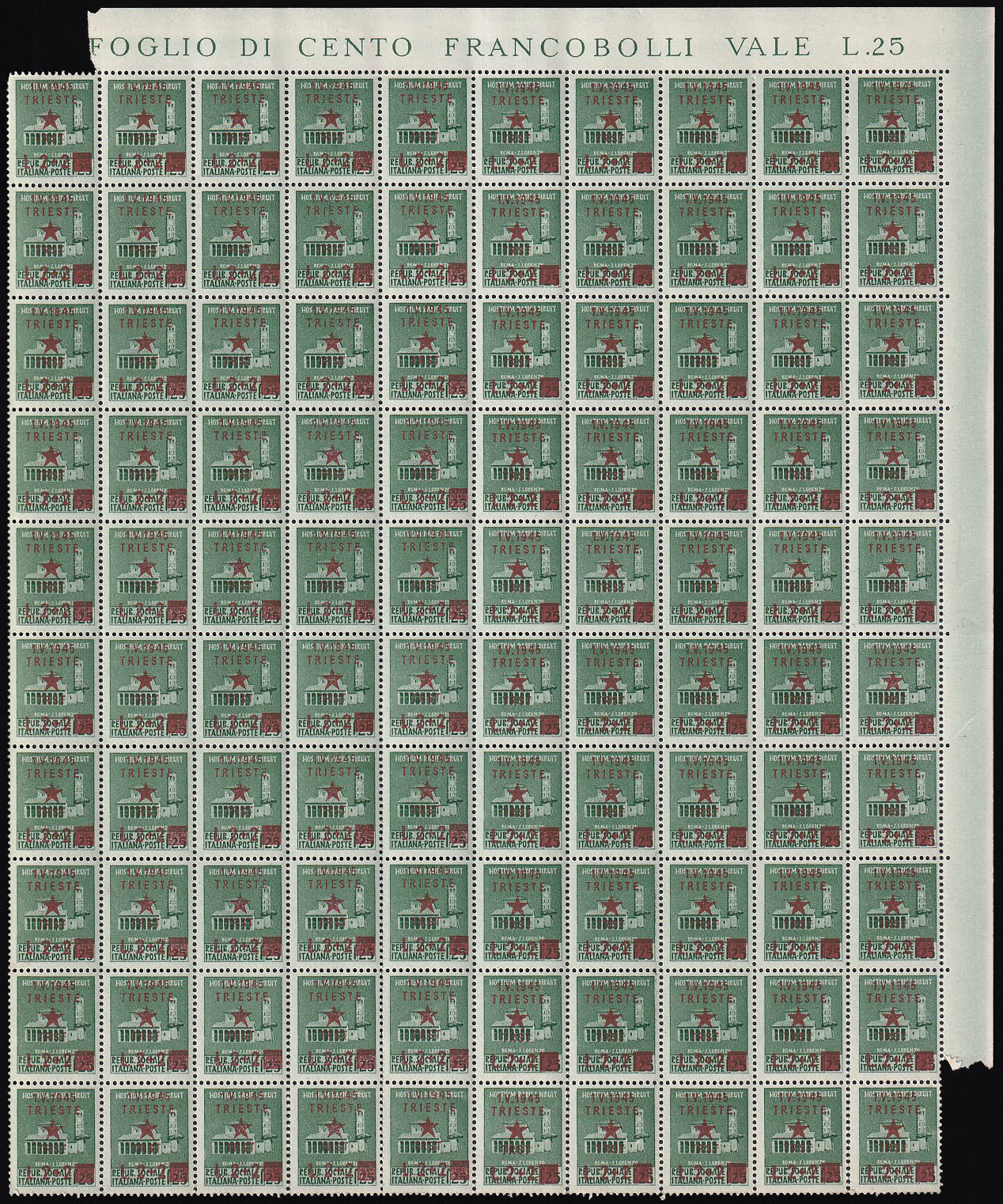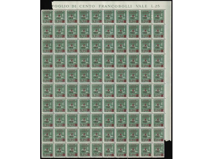 - Provizorno izdanje za Trst kompletan arak, pretisak 2+2 L/20 centi.