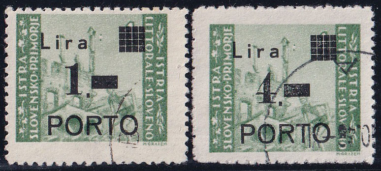 - PS br. 8 i 10, pogreška tiska na osnovnoj marci, dvije zelene točke desno od tornja.