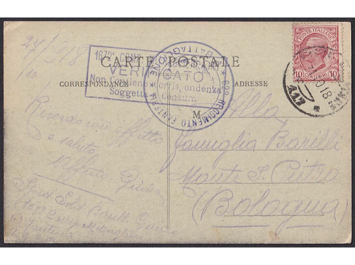 - Razglednica Bitole (Monastir) upućena preko talijanske vojne pošte 117 u Bolonju 31.10. 1918.