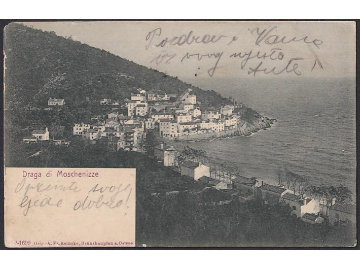 • Razglednica Moščenićke Drage upućena iz Opatije preko Vodnjana u Marčanu oko 1901.