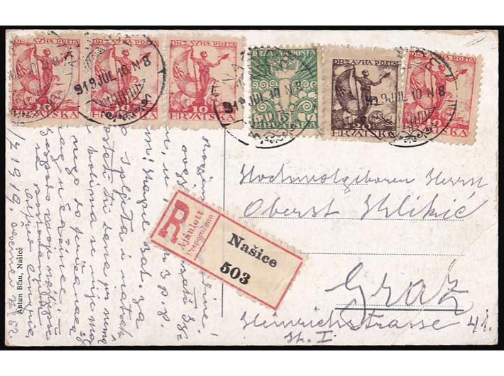 - Razglednica Našica preporučeno upućena iz Našica u Graz (Austrija) 10.07. 1919.