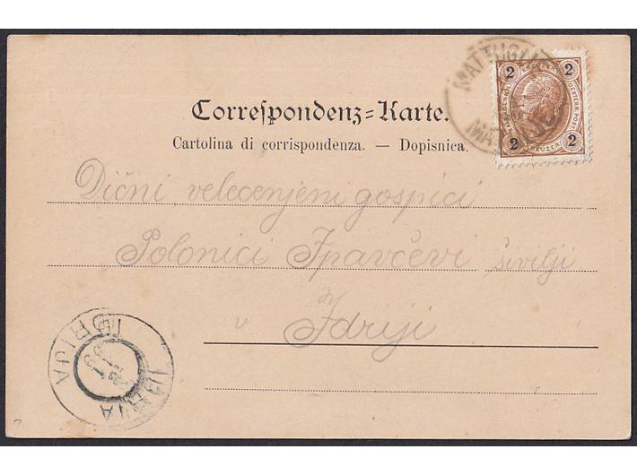 - Razglednica Opatije upućena prugom ABBAZIA-MATTUGLIE (Opatija-Matulje) u Idriju 02.11. 1899.