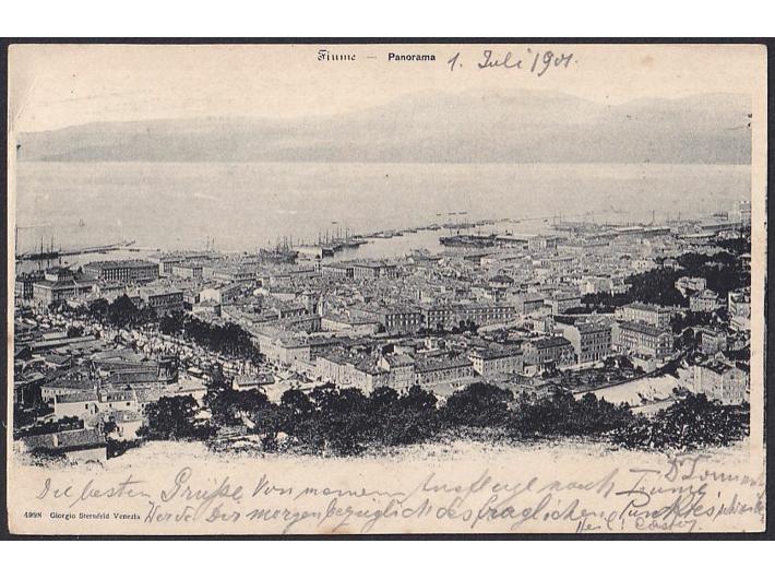 • Razglednica Rijeke upućena iz Rijeke u Innsbruck 01.07. 1901 sa zanimljivim željezničkim žigom.