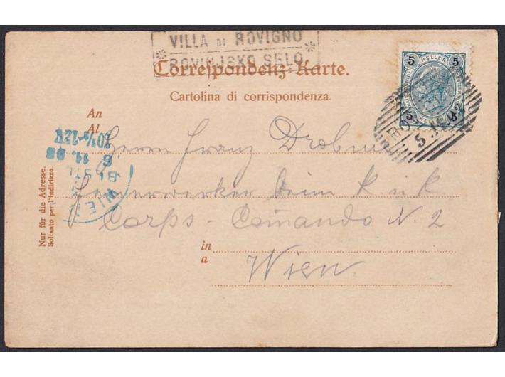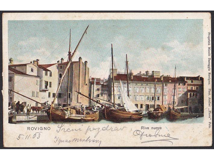 Opis: Razglednica Rovinja upućena s poštanske agencije VILLA di ROVIGNO / ROVINJSKO SELO preko pošte Rovinj u Beč 05.01. 1903. Dobra kvaliteta.
