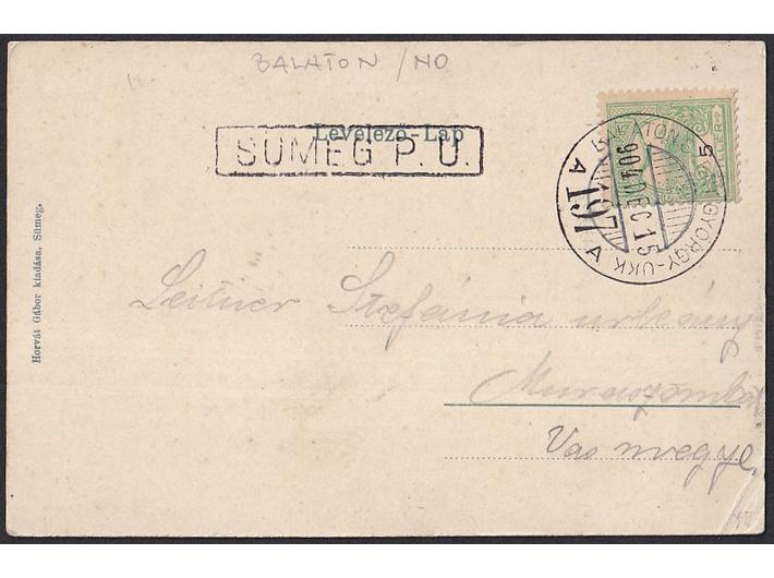 - Razglednica Sümeg-a upućena prugom BALATON SENTGYORGI-UKK u Mursku Sobotu 15.10. 1904
