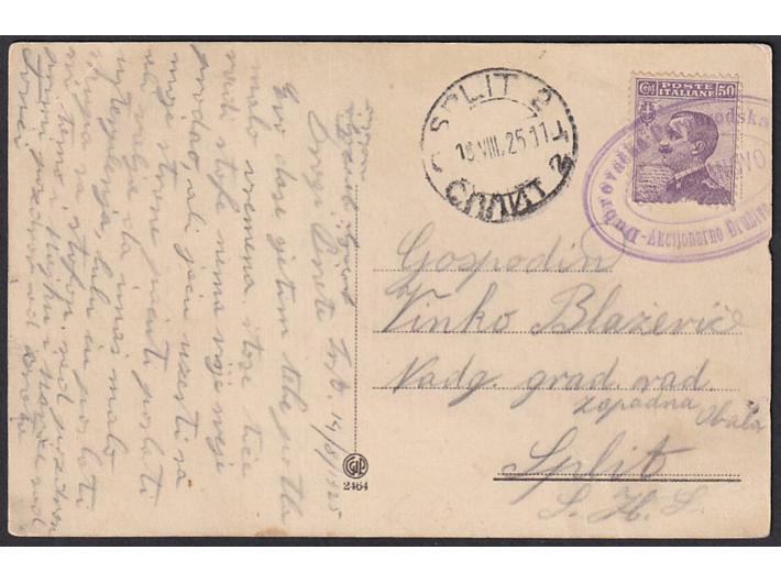 - Razglednica Trsta upućena brodom KUMANOVO Dubrovačke parobrodarske plovidbe u Split 16.08. 1925.