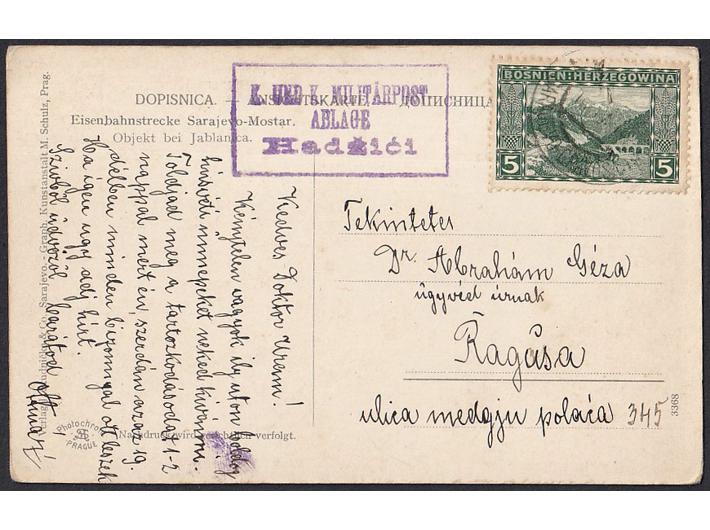 - Razglednica upućena iz poštanske agencije HADŽIĆI prugom SARAJEVO-GRAVOSA u Dubrovnik.