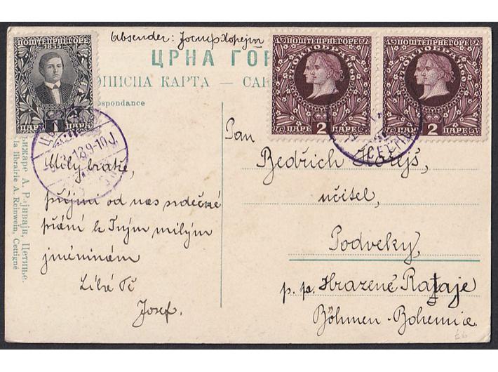 - Razglednica upućena s Cetinja 18.09. 1913 u Češku.