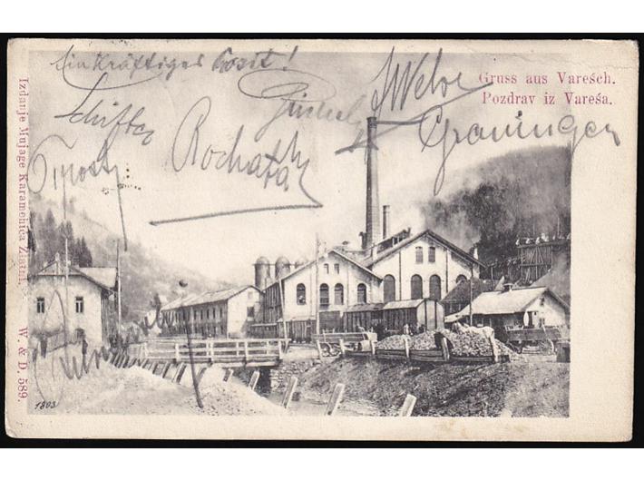• Razglednica Vareša upućena prugom VAREŠ-PODLUGOVI 25.06. 1906 u Beč.