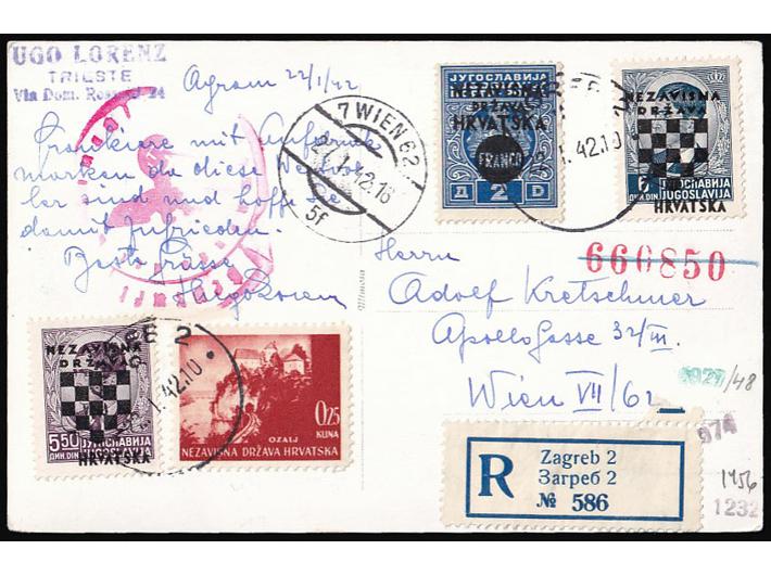 • Razglednica Zagreba preporučeno upućena iz Zagreba u Beč 22.01. 1942.