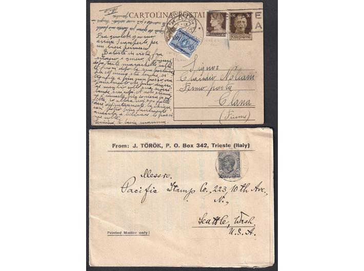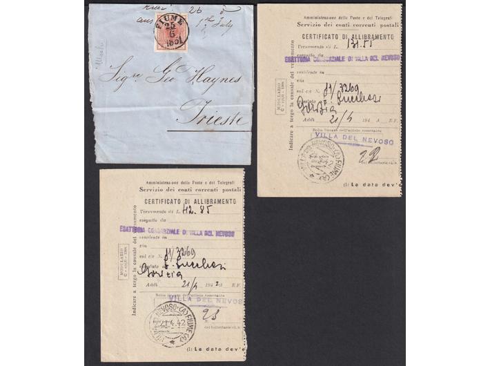 Rijeka i okolica, lot od 29 vrlo zanimljivih pisama, dopisnica, razglednica i drugih poštanskih dokumenata.