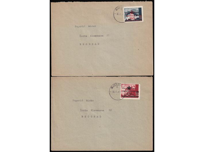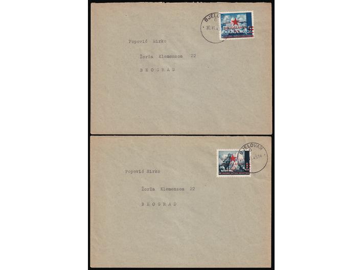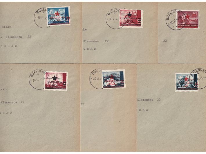 - Šest koverta frankiranih markama Zagrebačkog provizornog izdanja i poništene žigom Bjelovar 6