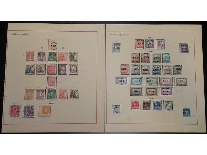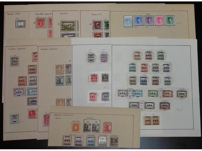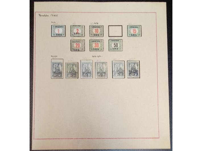 Opis: SHS Hrvatska i SHS Bosna i Hercegovina, zbirka na albumskim listovima. 15 fill. bijela brojka na isječku, krunidbene na isječku, pogreške pretiska, dvostruki i obrnuti, probni otisci kod mornara.