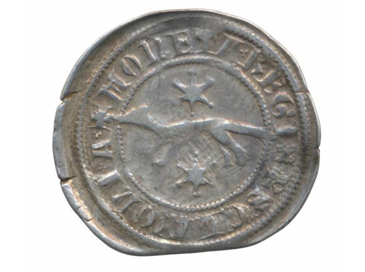 Opis: Slavonski banovac, denar, sigle S R (Stjepan V 1270. - 1272.), u polumjesecu ?, Ag - 0,96 g, 16 mm