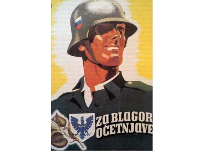 • SLOVENIJA, oznaka domobranstva - (našitek s kranjskim orlom), plavi orao na bijeloj podlozi i polumjesec u sredini. Velika povijesno-muzealska rijetkost. Iz zbirke Johna Telesmanicha. 55x70 mm