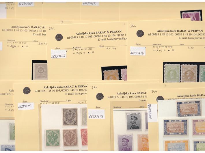 Opis: Srbija, Crna gora i kraljevina Jugoslavija. Razni lotovi s prijašnjih aukcija. Vrlo povoljna početna cijena.
