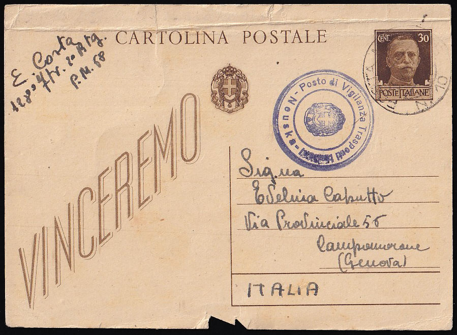 - Talijanska dopisnica upućena 15.02. 1943 preko vojne pošte PM 10.