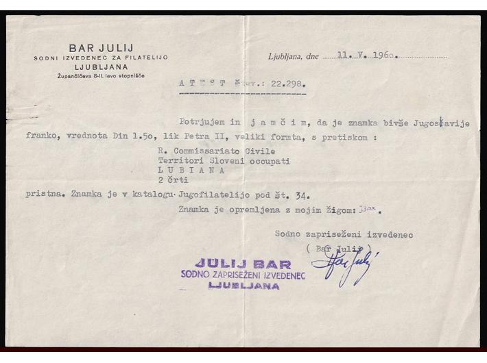 Opis: Talijanska okupacija, Michel br. 22I, probojni pretisak, odlična kvaliteta, atest Bar.