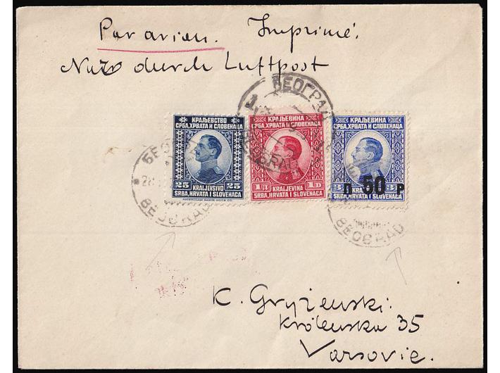 • Tiskanica upućena zrakoplovom iz Beograda u Varšavu 28.09. 1925.
