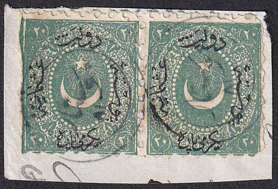 • Turska marka, Michel br 14, vodoravni par na isječku sa žigom MOSTAR.