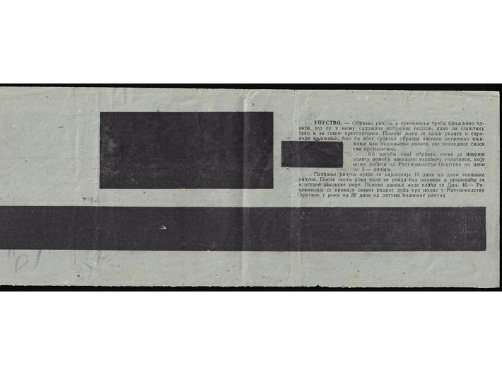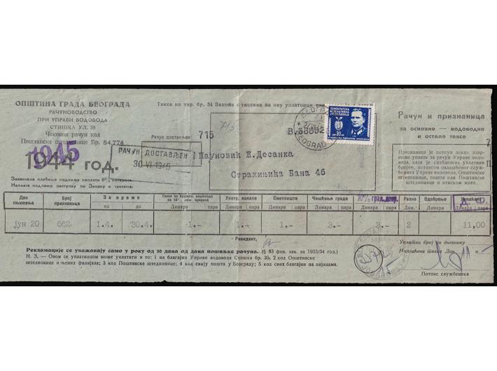 • Uplatnica vodovoda frankirana prvim definitivnim izdanjem s likom Tita od 30 din.