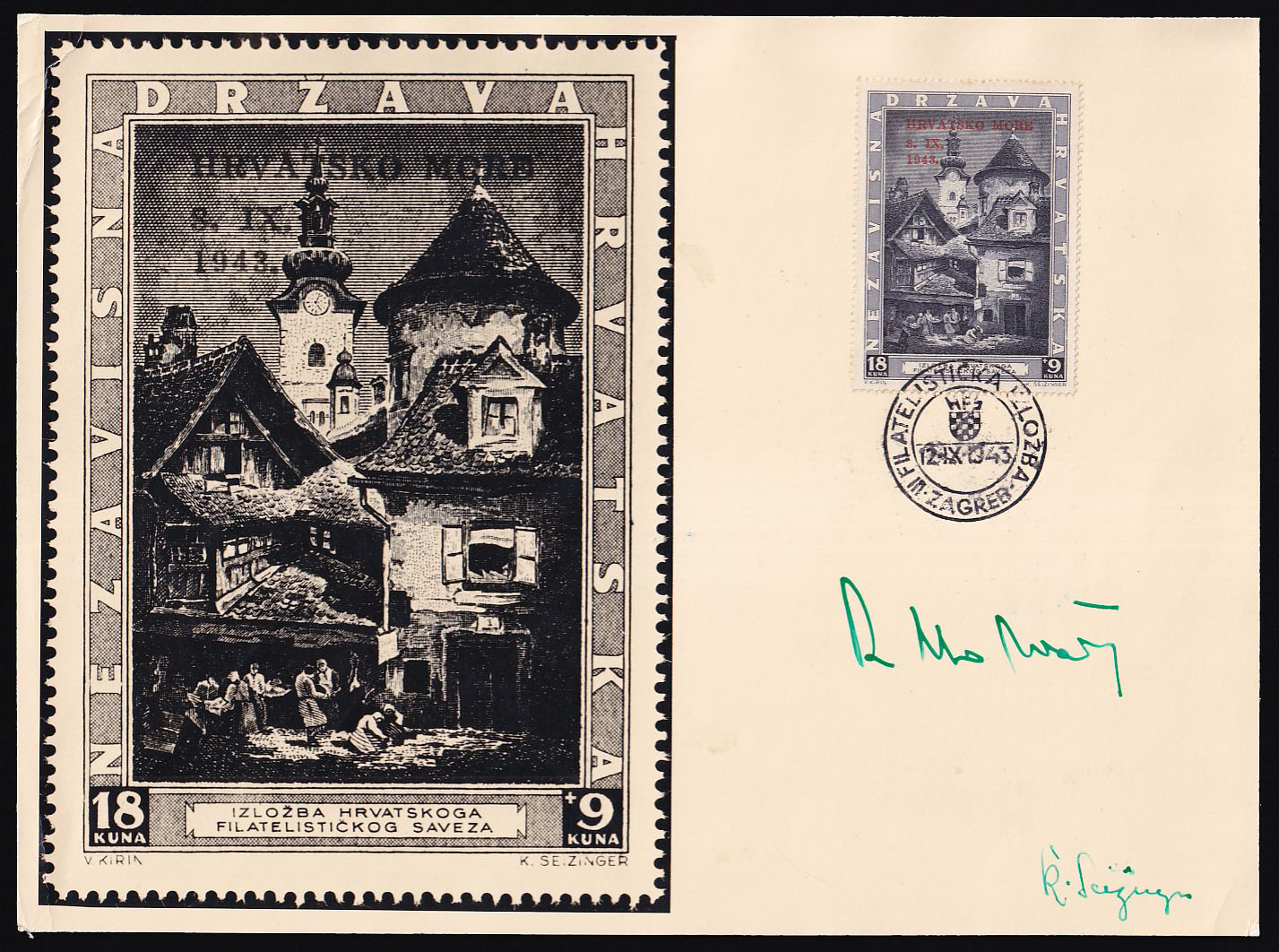 - Velika MC za marku “Hrvatsko more” s ručnim žigom i potpisima Radoslava Horvata i Karla Seizingera.