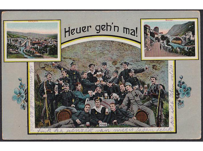 Opis: Vojnici slave uz pivo 1914. X/A-B